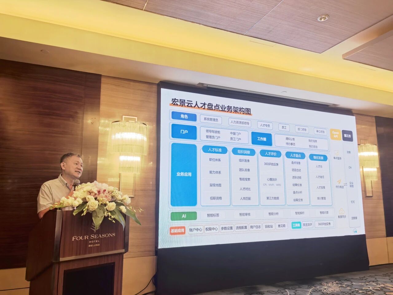 宏景軟件云業(yè)務(wù)總裁張大波聚焦數(shù)智賦能,展示宏景云人才盤點(diǎn)數(shù)字化解決方案。他指出,面對用人風(fēng)險(xiǎn),走出人才困境既要開源也要節(jié)流,宏景云數(shù)字化解決方案,不僅提供組織畫像、個(gè)人畫像、人才對比和人崗匹配分析等人才數(shù)量盤點(diǎn)工具,幫助組織“找才、識才、用才”;同時(shí),支撐全方位的360評估和心理測評,述職述能、結(jié)果校準(zhǔn),實(shí)現(xiàn)人才盤點(diǎn)全流程數(shù)字化管理。此外,通過制訂個(gè)人發(fā)展目標(biāo)、在線學(xué)習(xí)、帶教計(jì)劃等方式,為人才持續(xù)培養(yǎng)提供發(fā)展平臺。