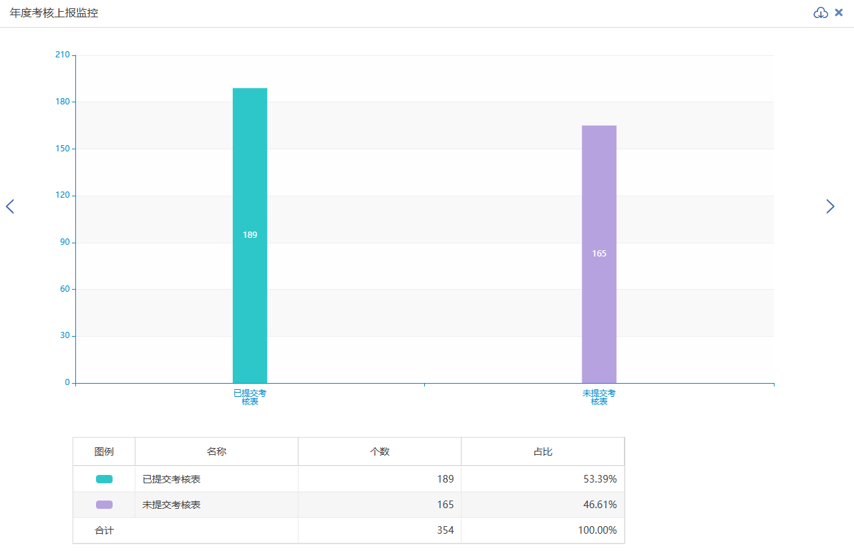 年度考核管理最大的難點(diǎn)之一在于過(guò)程不透明。宏景系統(tǒng)為管理者提供了一個(gè)可視化的“考核駕駛艙”。通過(guò)系統(tǒng)后臺(tái),可實(shí)時(shí)掌握整體的考核進(jìn)度:哪些員工尚未提交?哪些科室審批滯后?各項(xiàng)考核指標(biāo)的分布情況如何?這種從“事后補(bǔ)救”到“事中干預(yù)” 的轉(zhuǎn)變,讓管理者能夠精準(zhǔn)定位堵點(diǎn)、主動(dòng)協(xié)調(diào)資源,確保整個(gè)考核戰(zhàn)役步調(diào)一致、高效推進(jìn)。